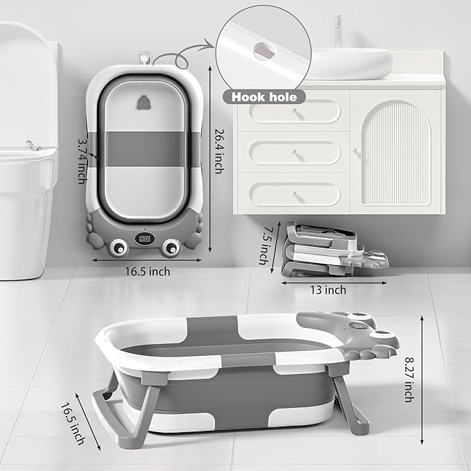 - Foldable Portable Design: Dual-fold design with less than 4 inches of thickness when folded, making the baby bathtub easy to assemble, disassemble, and store in any corner to save space. The built-in rubber drain plug eliminates the need to move the tub, making it ideal for both home and travel