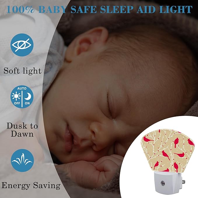 - [Night Light Socket Design]: This Christmas Red Cardinal Bird LED night light can be directly plugged into the wall socket, which is convenient and practical. Its compact design doesn't take up much space and can easily provide soft lighting for your kids, baby room, stairs and more.