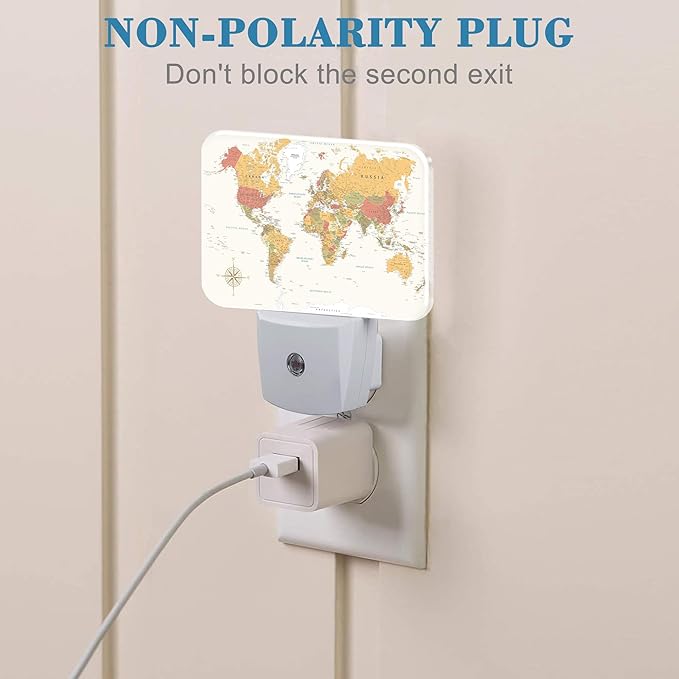 - [Energy saving saving]: Made with high-quality plastic, this Vintage Yellow World Map nightlight has a long lifespan of over 20000 working hours without bulb replacement, and it consumes less than 50 cents annually for power consumption. Its well-designed mini outlook is space-saving and doesn't block the bottom outlet for other devices.