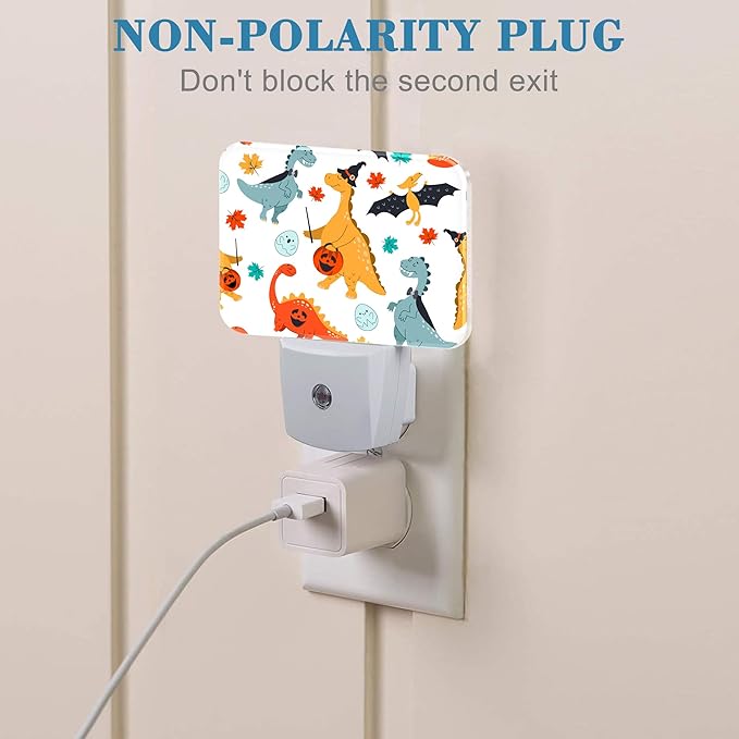 - [Night Light Socket Design]: This Halloween Cute Funny Dinosaur LED night light can be directly plugged into the wall socket, which is convenient and practical. Its compact design doesn't take up much space and can easily provide soft lighting for your kids, baby room, stairs and more.