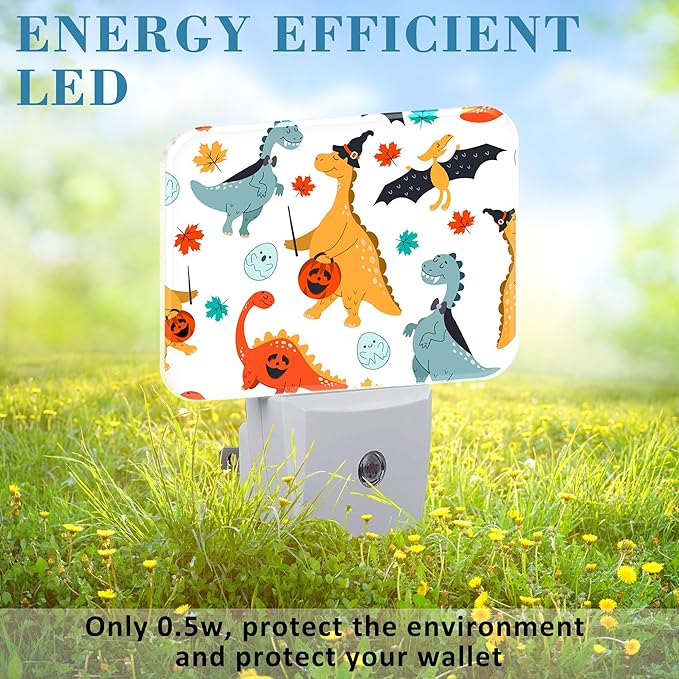 - [Energy saving saving]: Made with high-quality plastic, this Halloween Cute Funny Dinosaur nightlight has a long lifespan of over 20000 working hours without bulb replacement, and it consumes less than 50 cents annually for power consumption. Its well-designed mini outlook is space-saving and doesn't block the bottom outlet for other devices.