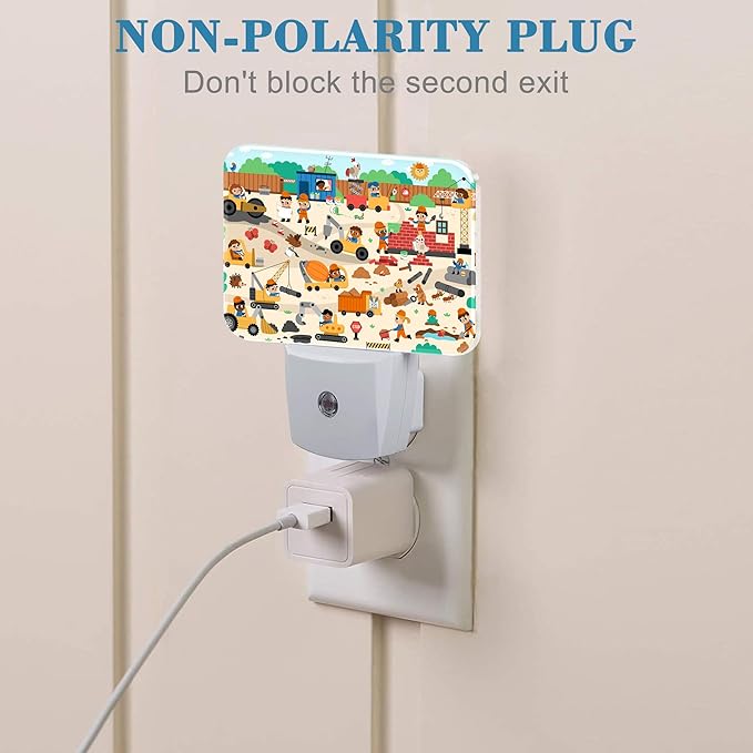 - [Night Light Socket Design]: This Cartoon Construction Site Scene LED night light can be directly plugged into the wall socket, which is convenient and practical. Its compact design doesn't take up much space and can easily provide soft lighting for your kids, baby room, stairs and more.