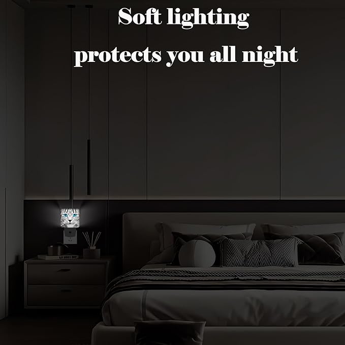 Blue Eyes Cat Night Light,Plug Into Wall with Dusk to Dawn Light Sensors, Warm Nightlights for Bedroom, Bathroom, Hallway, Kitchen, Gifts Ideal for Boys Girls Women Men