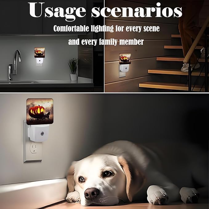 Halloween Pumpkin Carriage Night Light,Plug Into Wall with Dusk to Dawn Light Sensors, Warm Nightlights for Bedroom, Bathroom, Hallway, Kitchen, Gifts Ideal for Boys Girls Women Men