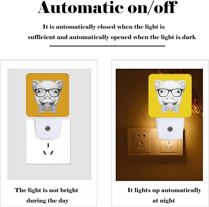 Pig with Glasses Night Light,Plug-in Night Lights with Dusk to Dawn Sensor for Stairway,Hallway,Bedroom Sleep Friendly Ideal for Women/Girls/Boys Gift,0.5w