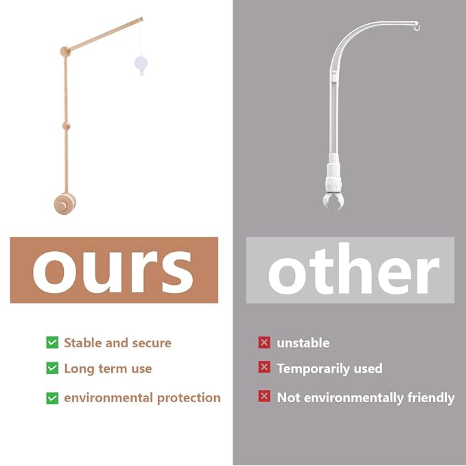 - [Mobile Holder for Crib]: Made of beech wood, including the crib mobile music box and crib mobile arm. It will be suitable for more baby mobile