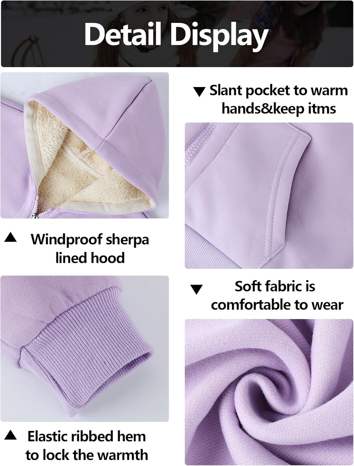 - Size: This sherpa lined girls hoodie is easy to wash, can be machine and hand washed (please do not bleach). Please refer to the SIZE CHART of this youth fleece jacket kids to choose your child's size.