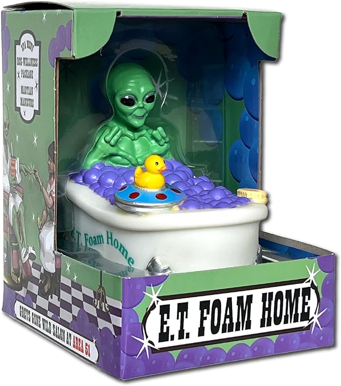- E.T. FOAM HOME - This Extraterrestrial has a heart and loves his Ros-Wellness Spa Package! Complete with his rubber ducky on his own floating alien spaceship! Perfect for the desk, bathtub, pool or even on your Jeep's dash!