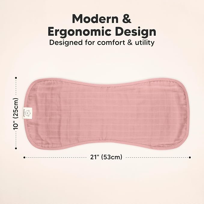 - Maximum Shoulder Coverage - Our burping cloths for babies are specially designed in figure-8 to ensure a secure fit, preventing the burp rags from slipping. Measuring 21" x 10", this neutral burp cloth provides ample coverage for your shoulders.