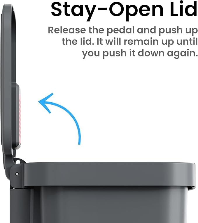 - HANDS-FREE PEDAL – Long-lasting pedal stands up to daily use and removes the need to touch the lid during waste disposal to keep hands clean.