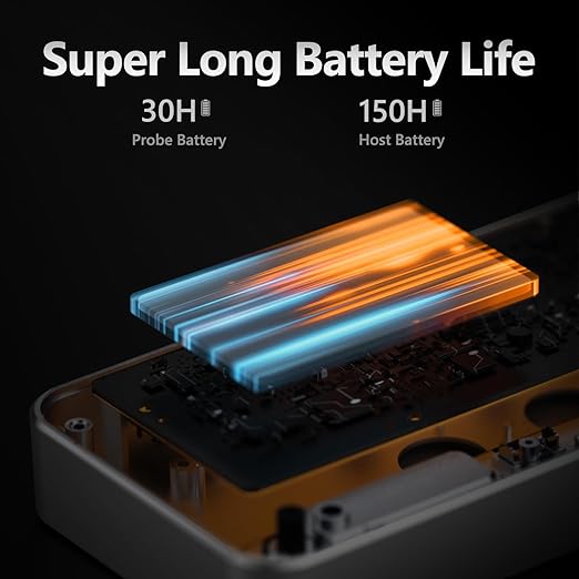 - 【Super Long Battery Life】A short 5 minute charge of the probe is enough to last 10 hours and a fully charged probe can last more than 30 hours. It only takes 15 minutes for the probe to fully charged and 2 hours for the host