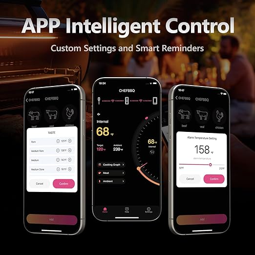 - 【Smart APP Monitoring】CHEFBBQ APP of our digital meat thermometer allows you to preset temperatures and doneness for various meats and it also offers alert and notification settings. It will be a nice gift for Christmas