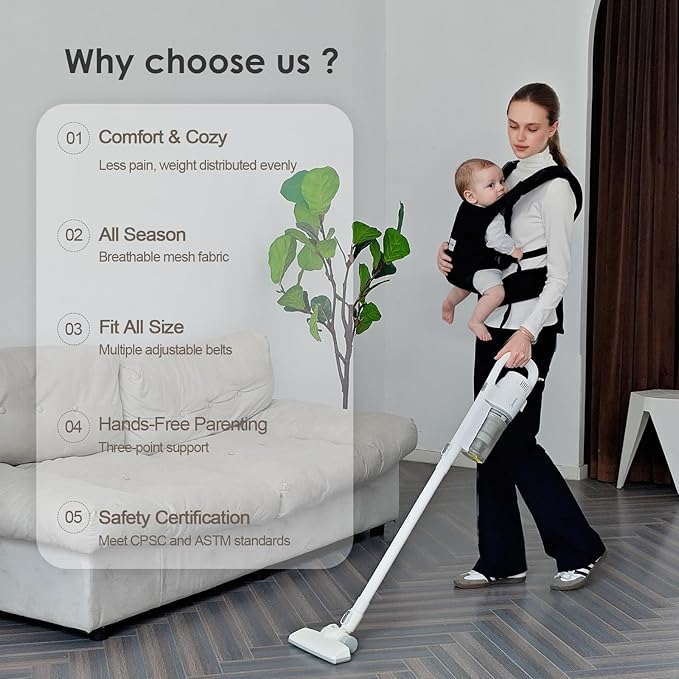 - Work-Saving Structure: Our baby holder carrier features a crossed shoulder strap and built-in EVA lumbar support structure, which distributes pressure on the shoulders, back, and waist evenly. This labor-saving design better protects your body and reduces pain and discomfort.