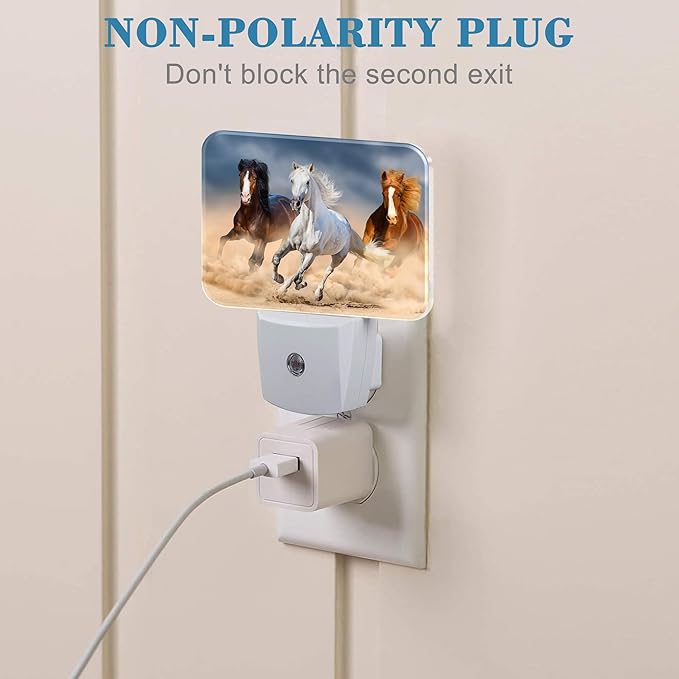 - [Energy saving]: Made with high-quality plastic, this Horse Running In Desert nightlight has a long lifespan of over 20000 working hours without bulb replacement, and it consumes less than 50 cents annually for power consumption. Its well-designed mini outlook is space-saving and doesn't block the bottom outlet for other devices.