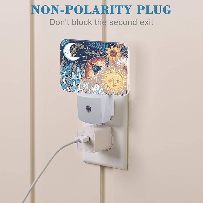 - [Night Light Socket Design]: This Boho Moth Mushroom LED night light can be directly plugged into the wall socket, which is convenient and practical. Its compact design doesn't take up much space and can easily provide soft lighting for your kids, baby room, stairs and more.