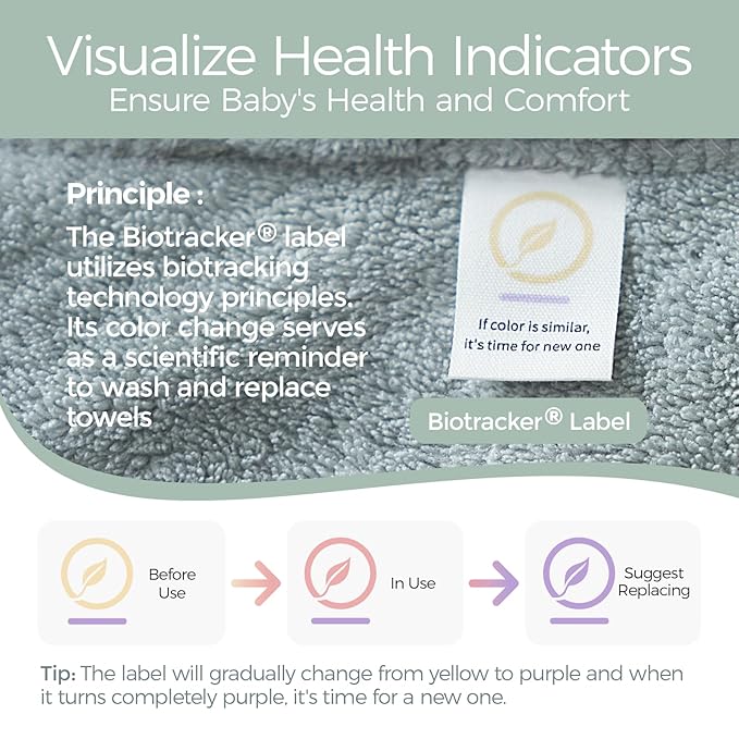 - [The First to Pioneer Health Concept, Protecting Your Baby's Growth] Momcozy baby towel for newborn comes with an innovative health indicator label that uses advanced tracking technology to monitor it's health condition. It reminds you to wash and replace towels scientifically, providing a safe and healthy environment