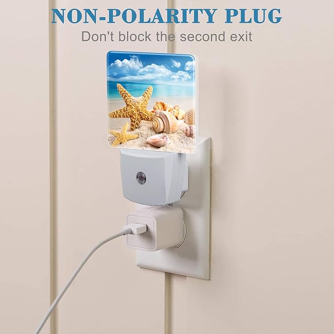 - [Night Light Socket Design]: This Starfish Seashells On Beach LED night light can be directly plugged into the wall socket, which is convenient and practical. Its compact design doesn't take up much space and can easily provide soft lighting for your kids, baby room, stairs and more.