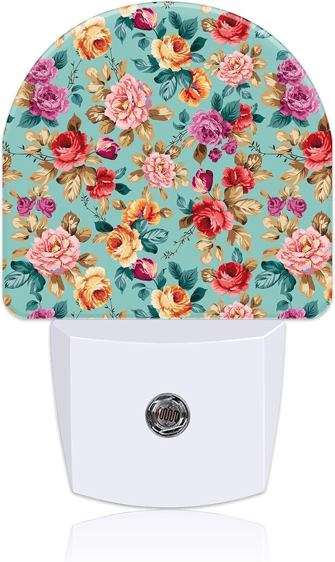 Plug in Night Lights Retro Pink Red Flowers Nightlight Plug Into Wall Dusk to Dawn Sensor LED Night Light for Kid Girls Boys Women Men Room Decor, Hallway, Kitchen, Bathroom, Nursery, Stairs
