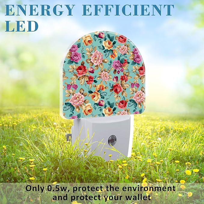 - [Energy Saving]: Made with high-quality plastic, this Retro Pink Red Flowers nightlight has a long lifespan of over 20000 working hours without bulb replacement, and it consumes less than 50 cents annually for power consumption. Its well-designed mini outlook is space-saving and doesn't block the bottom outlet for other devices.
