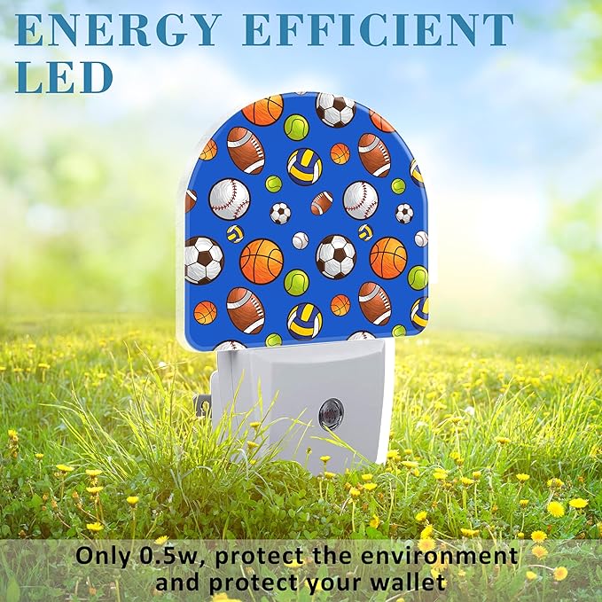 - [Dusk to Dawn Sensing]: Cartoon Sports Balls Night Light equipped with a dusk to dawn sensing function, it will automatically turn on at night or in a dimly lit environment, and automatically turn off in the morning or in sufficient light. This smart sensor design saves power and is convenient, so you don't need to switch manually.