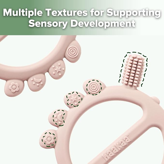 - ๐๐ฅ๐ฅ-๐๐ซ๐จ๐ฎ๐ง๐ ๐๐๐๐ญ๐ก๐ข๐ง๐ ๐ฐ๐ข๐ญ๐ก ๐๐ง๐ข๐ช๐ฎ๐ ๐๐๐ฑ๐ญ๐ฎ๐ซ๐๐ฌ๏ผWith gentle bristles and varied textures, this teether massages front and back gums for full relief. For added comfort, cool it in the fridge or freezer.
