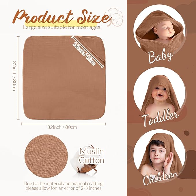 - Easy to Care: cotton baby bath towel set is machine washable; Muslin baby towels feature quick-drying function, hygienic, easy to clean, and durable; Ensure softness and maximum absorbency even after multiple washes