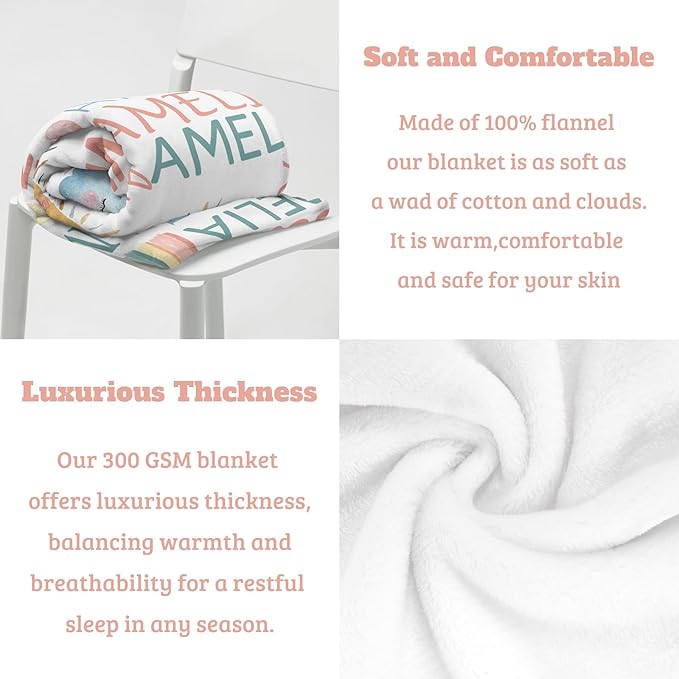 - PERSONALIZED BABY GIFTS: Personalized blanket makes for a perfect present for birthdays, Mother's Day, Valentine' s Day, or even as a special treat for yourself! It also serves as a one-of-a-kind gift for couples, best friends, and family members. With its charming appeal, it's an adorable option for birthdays, newborns, grandchildren, and anniversaries.