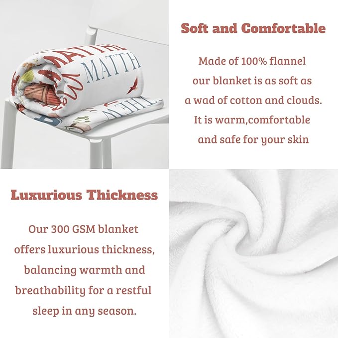 - HIGH QUALITY FABRIC: Custom baby blanket is made of 300gsm high-quality flannel material that won't fall off or pill, making it safer for your baby. Skin-friendly, comfortable and warm, it helps your baby sleep and protects his skin. It also has excellent print quality, bringing vibrant colors to life that never fade.