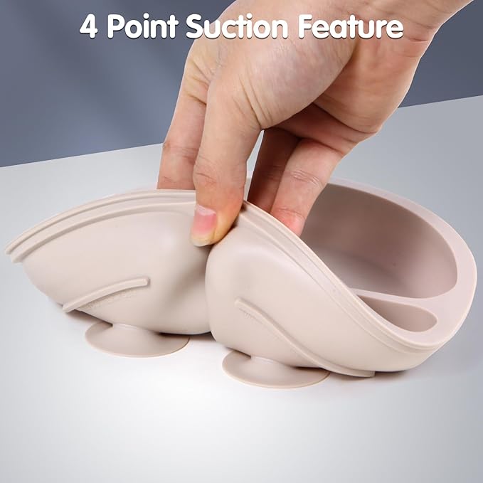 - Divided Suction Toddler Plates: Our toddler plates feature separate compartments in different sizes for parents to dispense food of different tastes. There are 4 small suction cups on the bottom of the baby plates, evenly distributed, which can be firmly fixed on smooth surfaces and the plate stays in place. The plate's raised edges make it easy for baby to scoop up food easily, encouraging independent eating without mess!