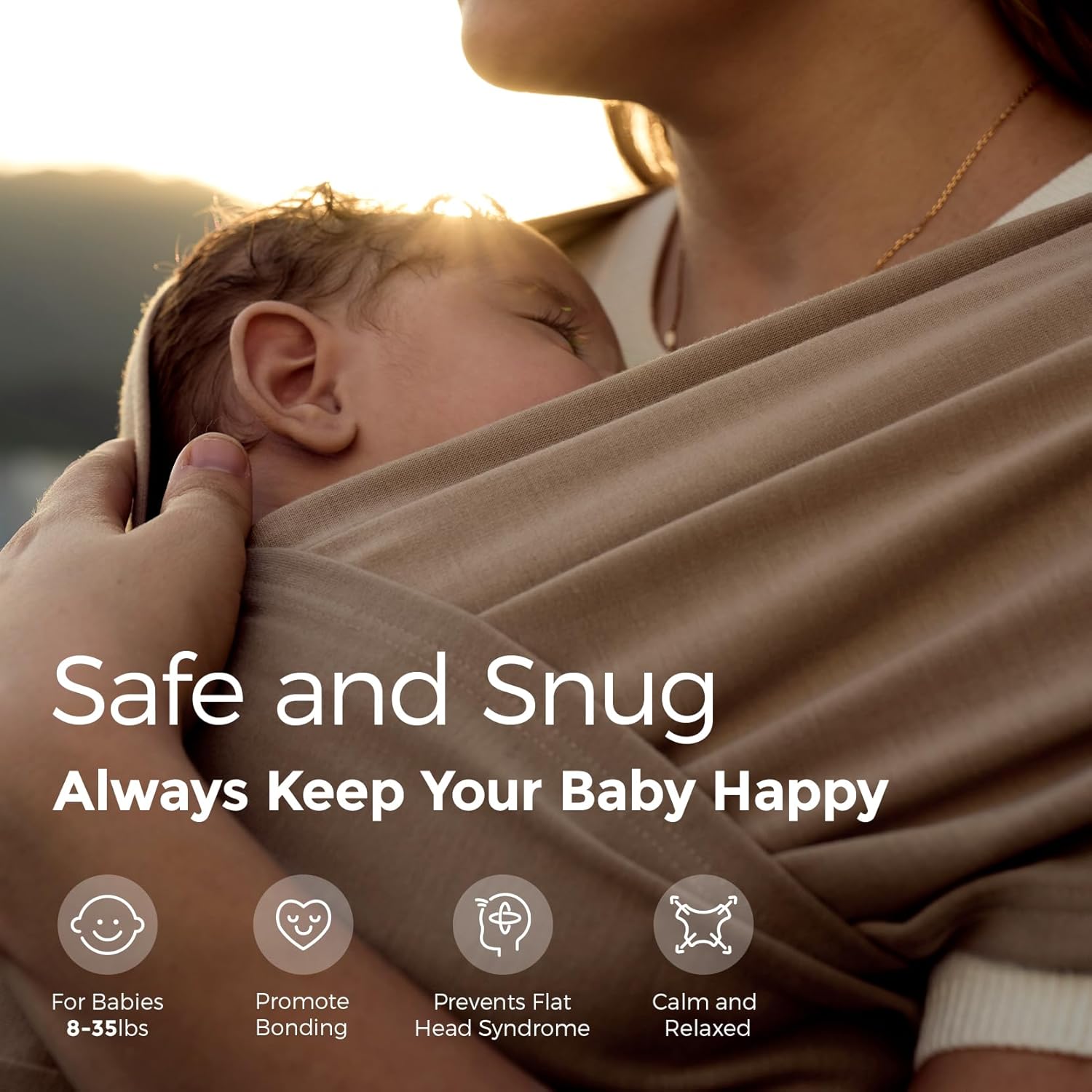 Momcozy Baby Wrap Carrier - Easy to Wear Infant Carrier Slings, Lightweight Hands Free Baby Sling, Adjustable Baby Carriers for Newborn to Toddler 8-35 lbs, Baby Wraps Carrier, Light Curry