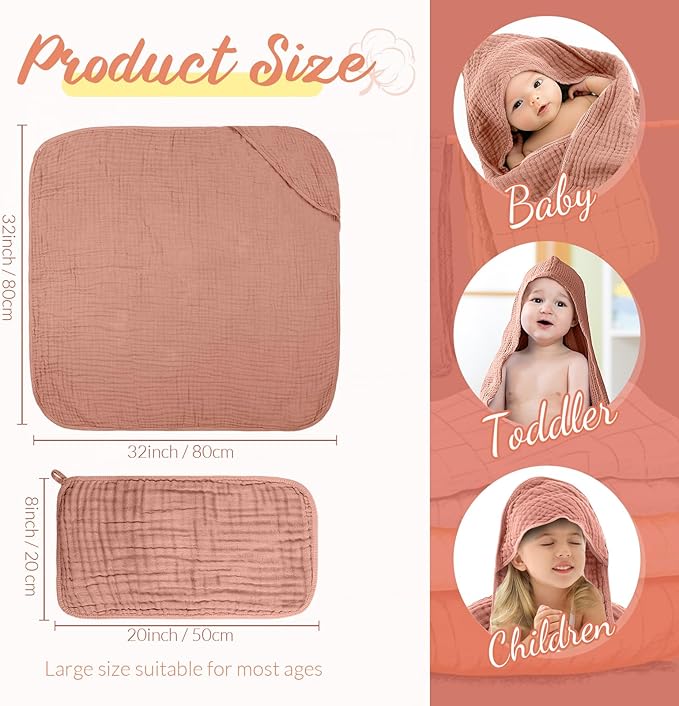 - Easy Care: this muslin cotton baby bath towels set is designed to be machine washable; The towels have quick dry capabilities, making them hygienic, easy to clean, and long lasting; Perfect for everyday use, these baby towels and washcloths set ensure softness and maximum absorbency remains uncompromised even after many washes