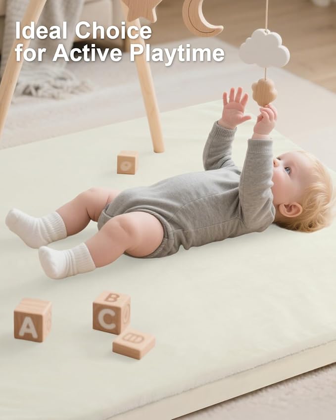 - Stylish Design for Multi- Scenarios Use: This Baby mat comes in 3 colors, beige, grey and green. Beige mats appears as soft white-beige in natural light,versatile and warm, fitting various home decors;The mat size is 50x50 inches, which can perfectly fit 50x50 inches baby playpen, you can also use it in tents, playrooms, bedrooms, living rooms, and even outdoors. Size may temporarily exceed specs due to foam compression during shipping. Please allow 24-72 hours for full recovery. If the size still doesn’t meet expectations, feel free to ask for support—we’re happy to help!