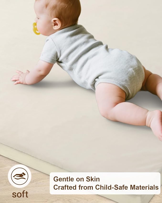 - Super Soft Flannel Fabric, Non Slip Vegan Leather, Comfortable and Safe: The top of the mat is made of soft and thick flannel fabric, together with the thick foam, which brings you and your child a comfy and comfortable experience like a cloud, and will not bring a cold touch like the contact surface of leather. The bottom is made of vegan leather, which is friction-resistant and non-slip, you don't have to worry about your child slipping on it.