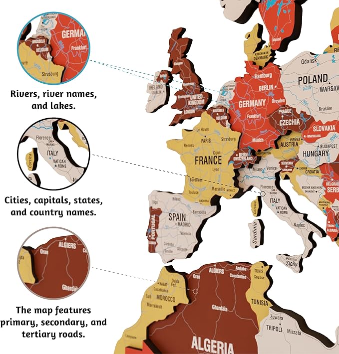 Colorfull Worlds 3D Wooden World Map Wall Art - Premium Multicolored World Travel Map for Wall Decor with Push Pins- Ideal Housewarming Gift & Travel Tracker (XLarge, Terracota)
