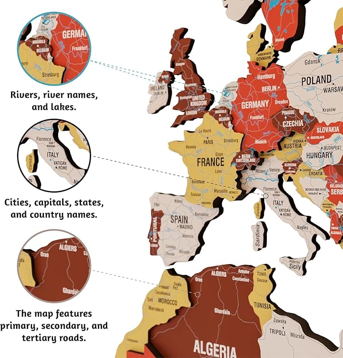 Colorfull Worlds 3D Wooden World Map Wall Art - Premium Multicolored World Travel Map for Wall Decor with Push Pins- Ideal Housewarming Gift & Travel Tracker (Medium, Terracota)