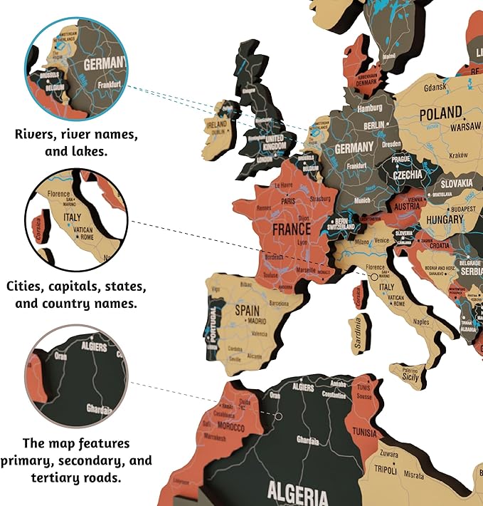 Colorfull Worlds 3D Wooden World Map Wall Art - Premium Multicolored World Travel Map for Wall Decor with Push Pins- Ideal Housewarming Gift & Travel Tracker (Medium, Sage)