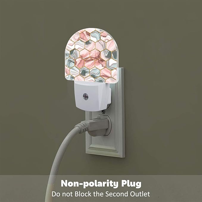Red Gray Hexagon Marble Night Light Plug into Wall, Abstract Gold Liquid Marble Dusk to Dawn Night Light Plug in,0.5w Energy Saving Sleep Friendly NightLight for Kids Boys Girls Home Decor