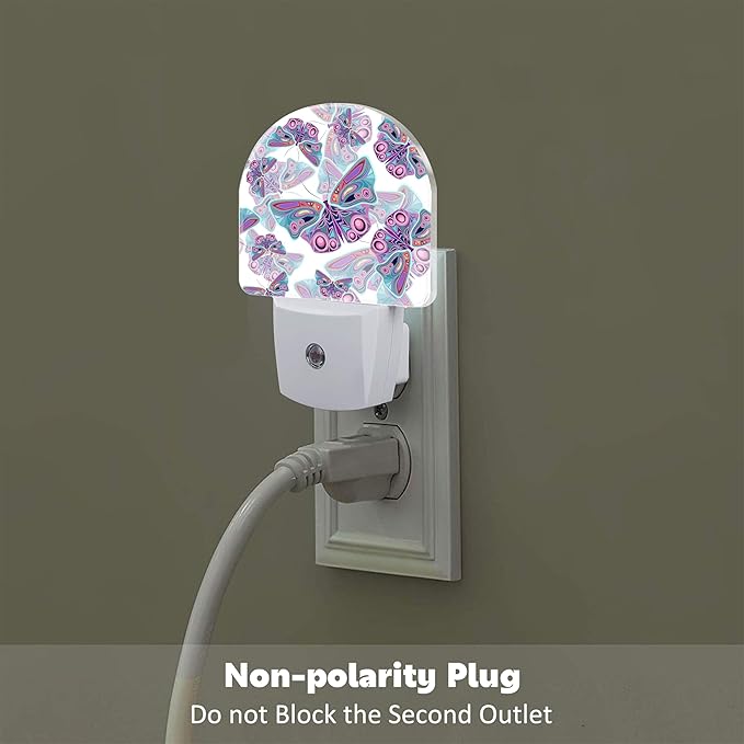 Colorful Butterflies Night Light Plug into Wall,Retro Watercolor Butterfly Dusk to Dawn Night Light,0.5w Energy Saving Sleep Friendly Nightlights for Kids Boys Girls Home Decor