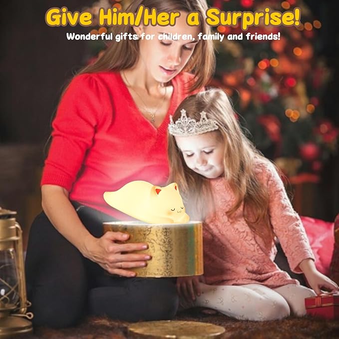 - 【Heartwarming Gift】This is a very cute night light for kids, children, cat lovers and even adults. It is a heartwarming gift for kids or friends on birthdays, Christmas, Children's Day and other festivals, decorating the space, accompanying the growth, and bringing a warm touch to you and your beloved ones. Kids love to give cute night lights as gifts! Just give the baby night light as a gift to your child, your little daughter will look at the cute night light with envy and say, “Thanks mom, now I can sleep with my cat buddy tonight!”