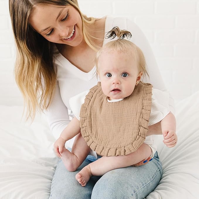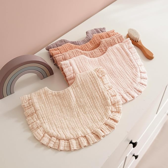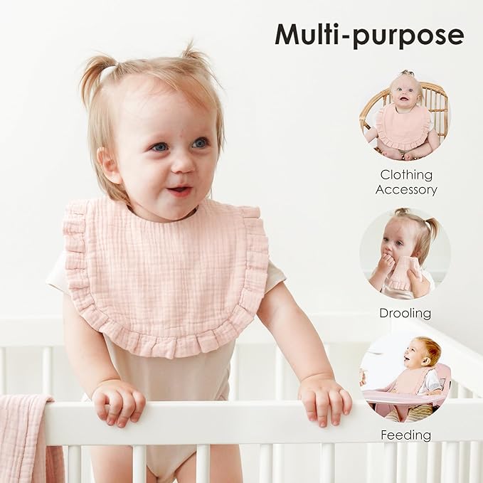 - Ultimate Comfort: MairMore muslin bibs provide a luxurious touch with 100% cotton muslin fabric that keeps your baby dry, cozy, and comfortable throughout teething, drooling, and feeding. The delicate flounce-lace border adds a charming flair, making the drool bibs both practical and stylish