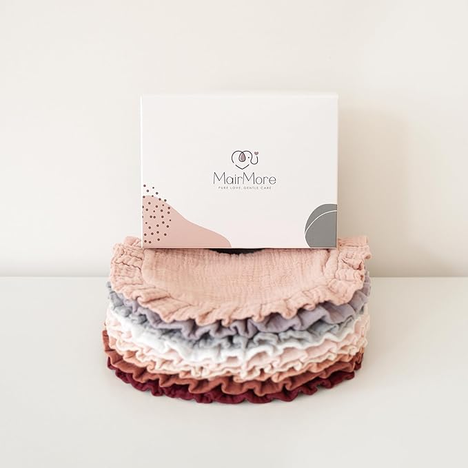 - Experience Unmatched Comfort: MairMore's muslin baby bibs redefine comfort with their premium 100% cotton muslin fabric, ensuring your little one stays cozy and dry during teething, drooling, or feeding sessions. Featuring a flounce-lace border design, the drool bibs add a touch of elegance to your baby's attire.