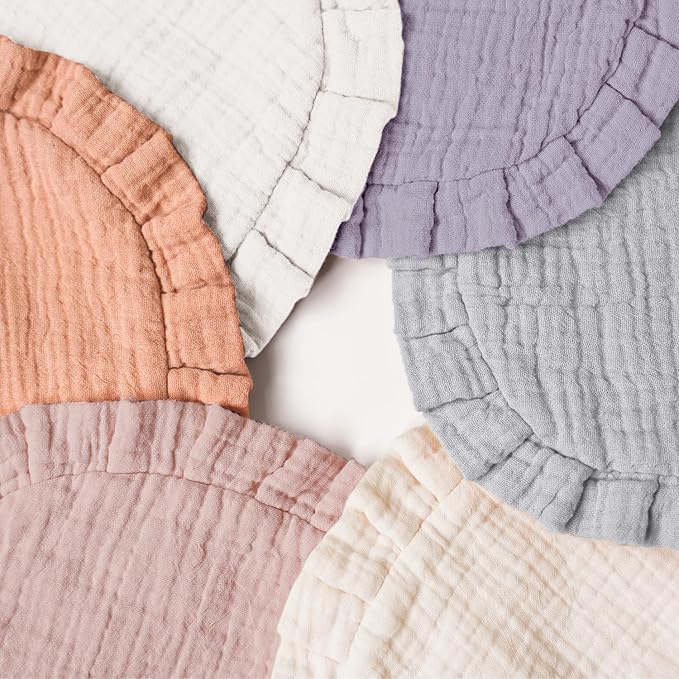 - Experience Unmatched Comfort: MairMore's muslin baby bibs redefine comfort with their premium 100% cotton muslin fabric, ensuring your little one stays cozy and dry during teething, drooling, or feeding sessions. Featuring a flounce-lace border design, the drool bibs add a touch of elegance to your baby's attire.