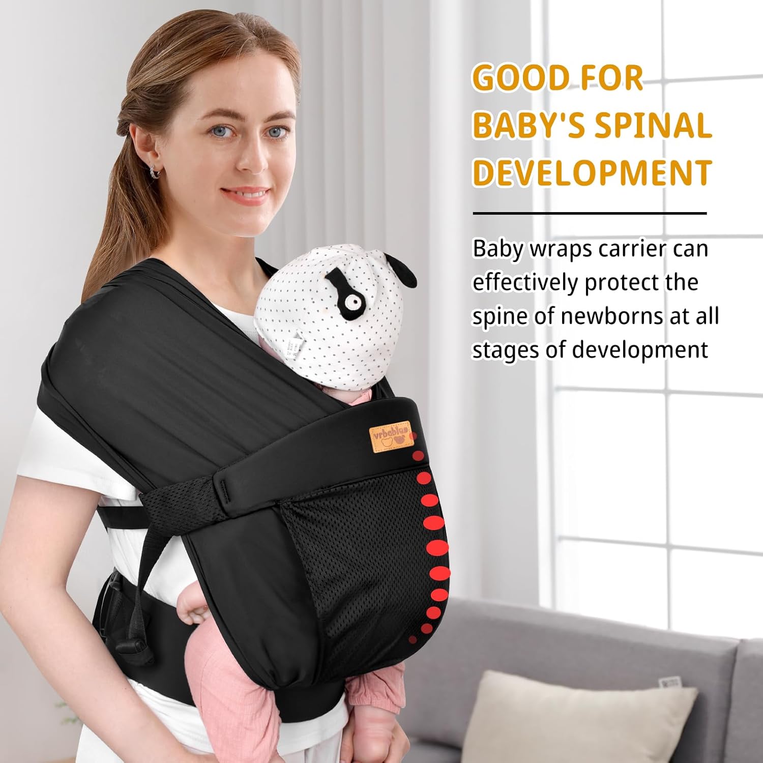 Baby Wraps Carrier Sling, Baby Carrier for Newborns and Toddlers,Skin-Friendly and Soft Front Baby Carrier Wrap Perfect Baby Gifts (Black, Mesh)