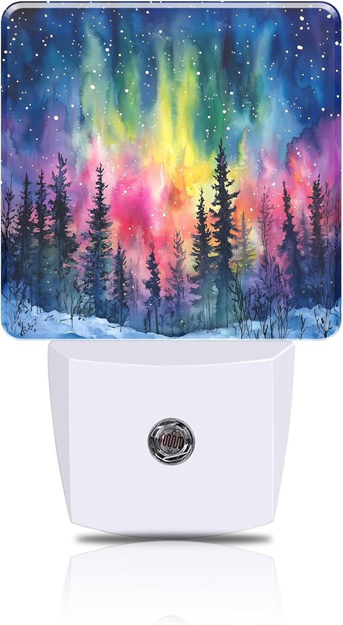 Winter Forest Night Light Northern Lights Night Lights Plug into Wall Smart Dusk to Dawn Sensor 0.5W Energy Efficient Led Lamp for Men Women Bedroom Bathroom Hallway Stairway Decor