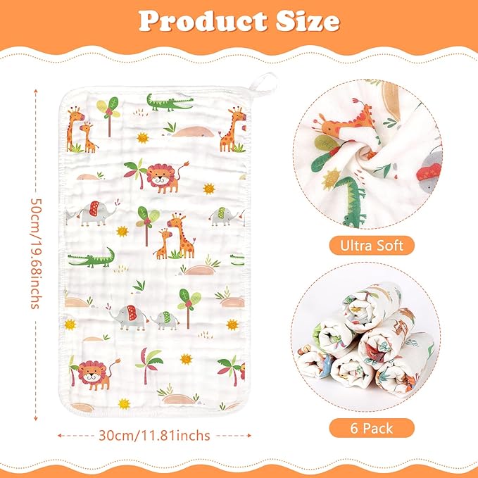 - Excellent Absorbency: Designed with 6 layers cotton muslin, the burp cloths provide premium softness and durability.Meanwhile, the thickened baby muslin cloth features its super liquid-absorbing,keeping drying on your little ones.