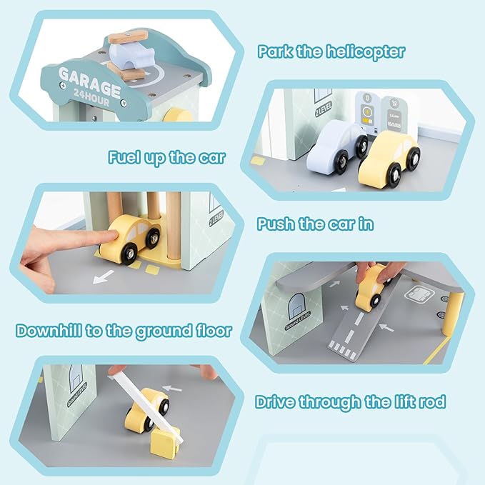 - Safety is Priority: Crafted from reliable and healthy wood material, this car garage toy is built to last and can withstand the enthusiastic play of young children. Moreover, the smooth and rounded edge will prevent kids from stitches, and the accessories of suitable size ensure safety.