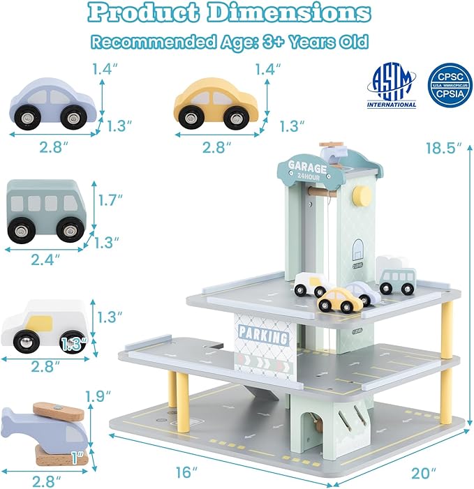 - Ideal Educational Toy: This parking garage for toy cars is not just a toy, but a valuable educational tool that promotes kids’ all-round development. Suitable for kids room, playroom, daycare and nursery. Besides, the toy garage complies with ASTM and CPSIA, making it an ideal gift choice for kids.