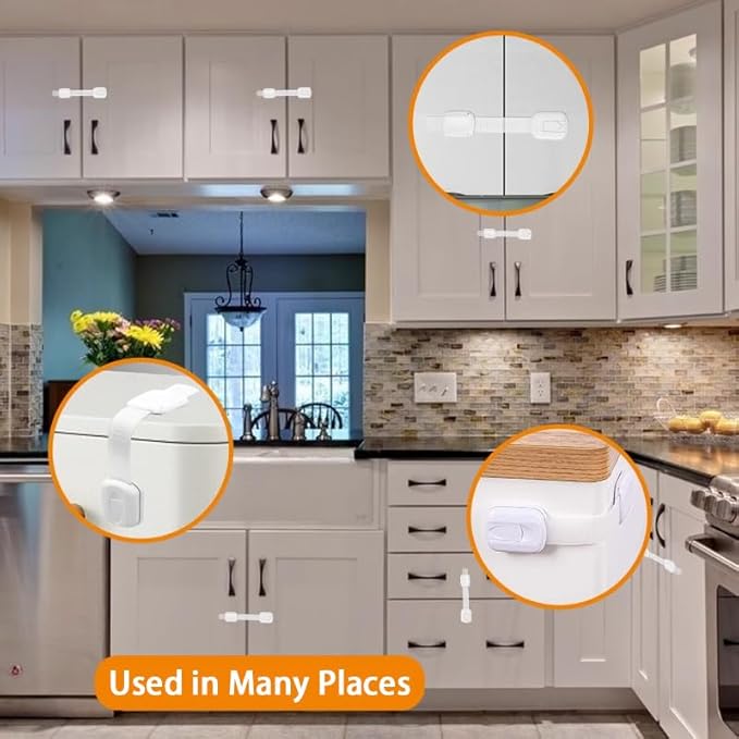 - [Wide Applications]: Baby proofing kits can help to prevent your little ones from reaching to kitchen cabinets, side-by-side refrigerators, cupboards storage doors,electrical outlet, toilet seat cover ,corner protection and make them stay out of trouble, can be applied to kitchen, bathroom, pantry room, bedroom and any place you feel your baby need to protect