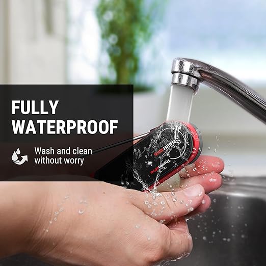 - 【Exquisite Design】Magnetic back, kitchen hook, and compact design make this digital meat thermometer easy to store and carry; Custom calibration ensures the accuracy of this meat probe can last forever; Fully waterproof feature allows this device to be safely cleaned under running water