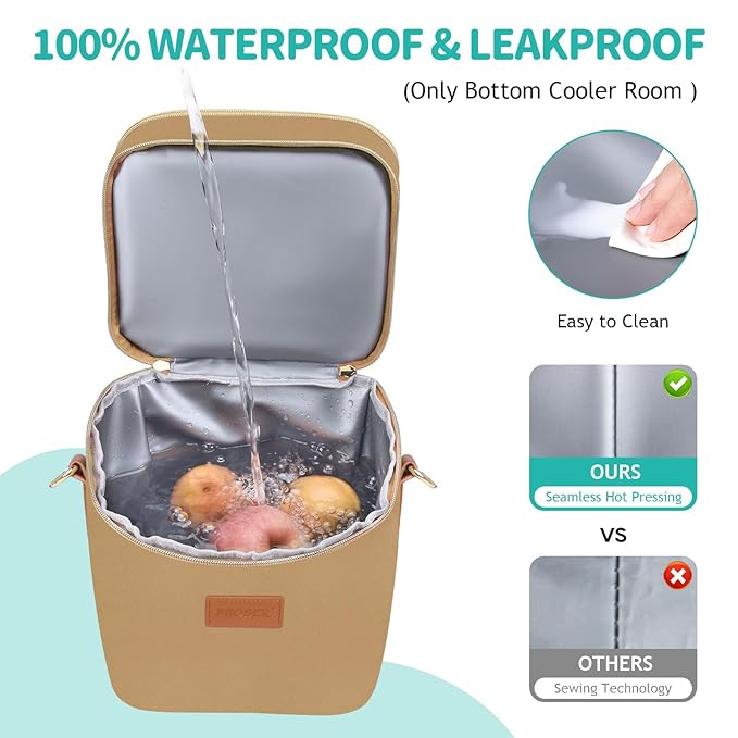 - 100% WATERPROOF & LEAKPROOF: Our food-grade EVA insulated liner adopts hot-pressing technology for 100% waterproof and leak-proof, and 5mm thickened foam keeps cold for up to 20 hours(with ice packs). It's easy to clean the water or milk stains and just need a towel or damp paper towel.